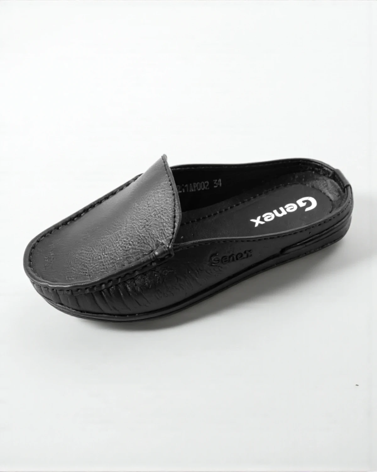 Keep your child comfortable and stylish with this classic black Genex kids’ slip-on sandal. Lightweight, durable, and easy to wear perfect for everyday adventures.