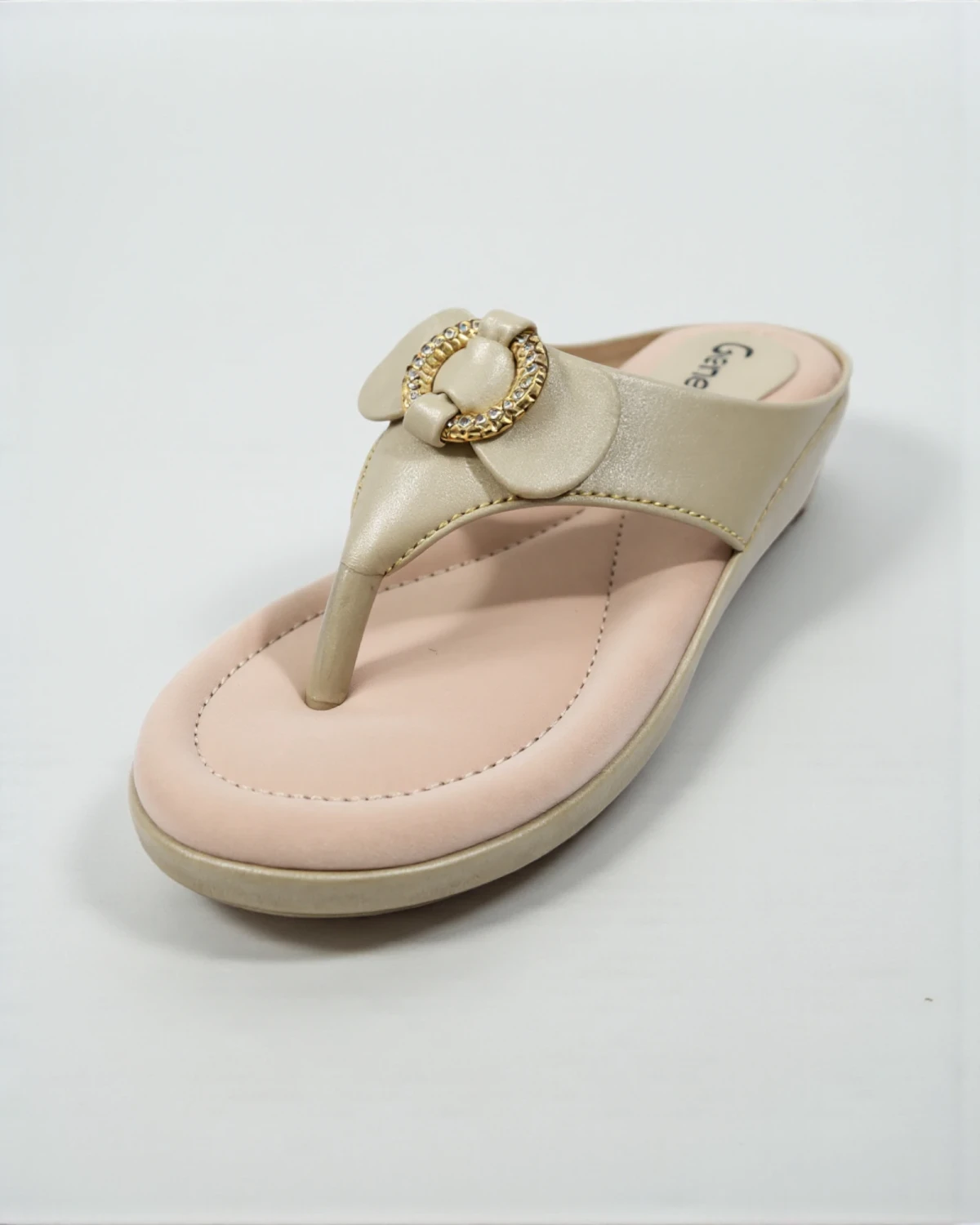 Let your little one shine with this elegant Genex kids’ sandal. Featuring a soft design with a golden ring embellishment, it ensures both comfort and style for every festive or casual occasion.