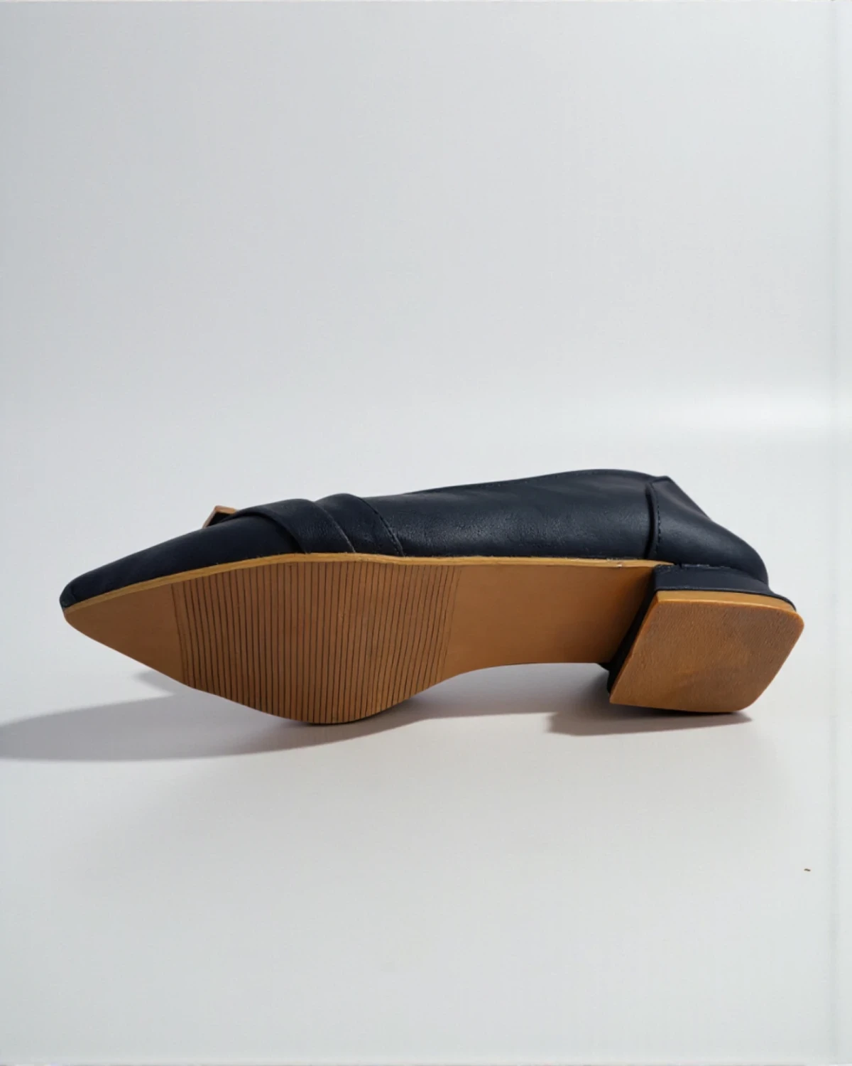 Step into elegance with the Genex Black Pointed-Toe Comfort Pumps, featuring a sophisticated strap with a gold-tone metallic buckle. These slip-on formal shoes combine a sleek professional look with all-day comfort, making them the perfect choice for office wear or corporate events.