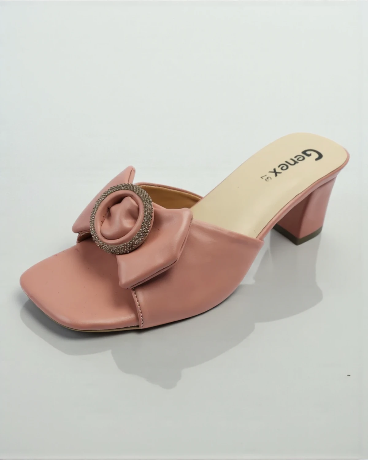 Elegant and stylish, this pink Genex block-heel sandal features a soft upper with a decorative bow and metallic ring accent perfect for both casual and festive occasions.