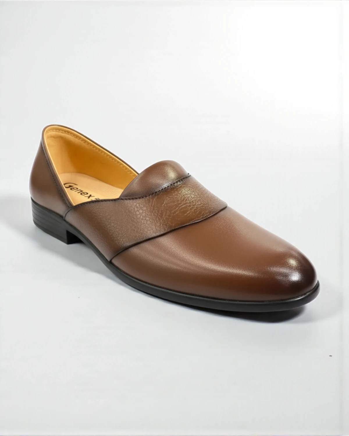 Genex Men's Brown Leather Loafer Stylish slip-on formal shoe featuring textured leather accents, comfortable PU sole, and effortless elegance perfect for office, business, and formal occasions.