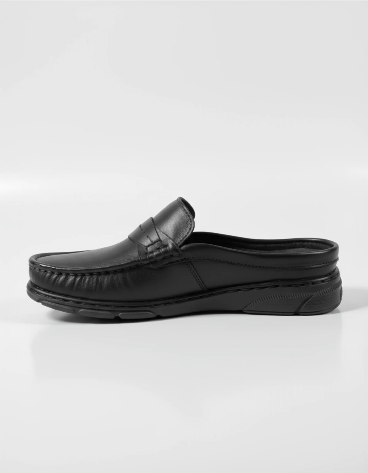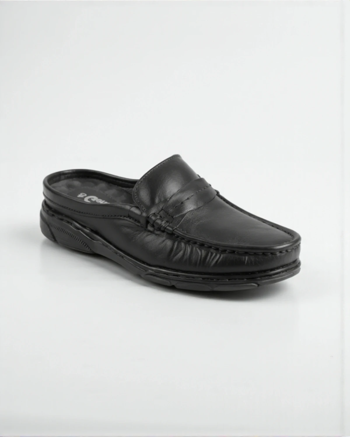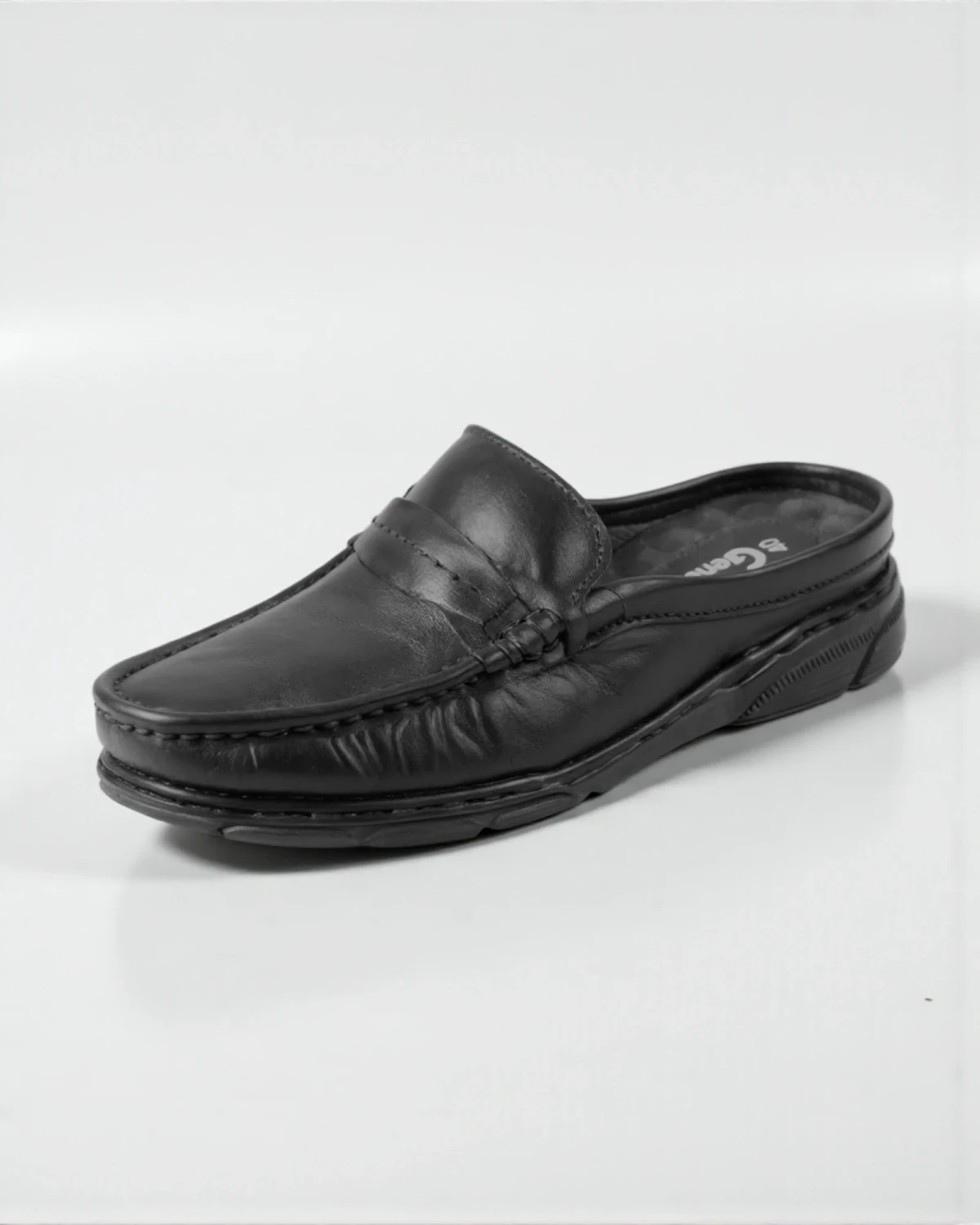 Experience effortless comfort and timeless simplicity with this black Genex men’s slip-on sandal. Designed for everyday wear, it combines soft cushioning with durable craftsmanship for all-day ease.