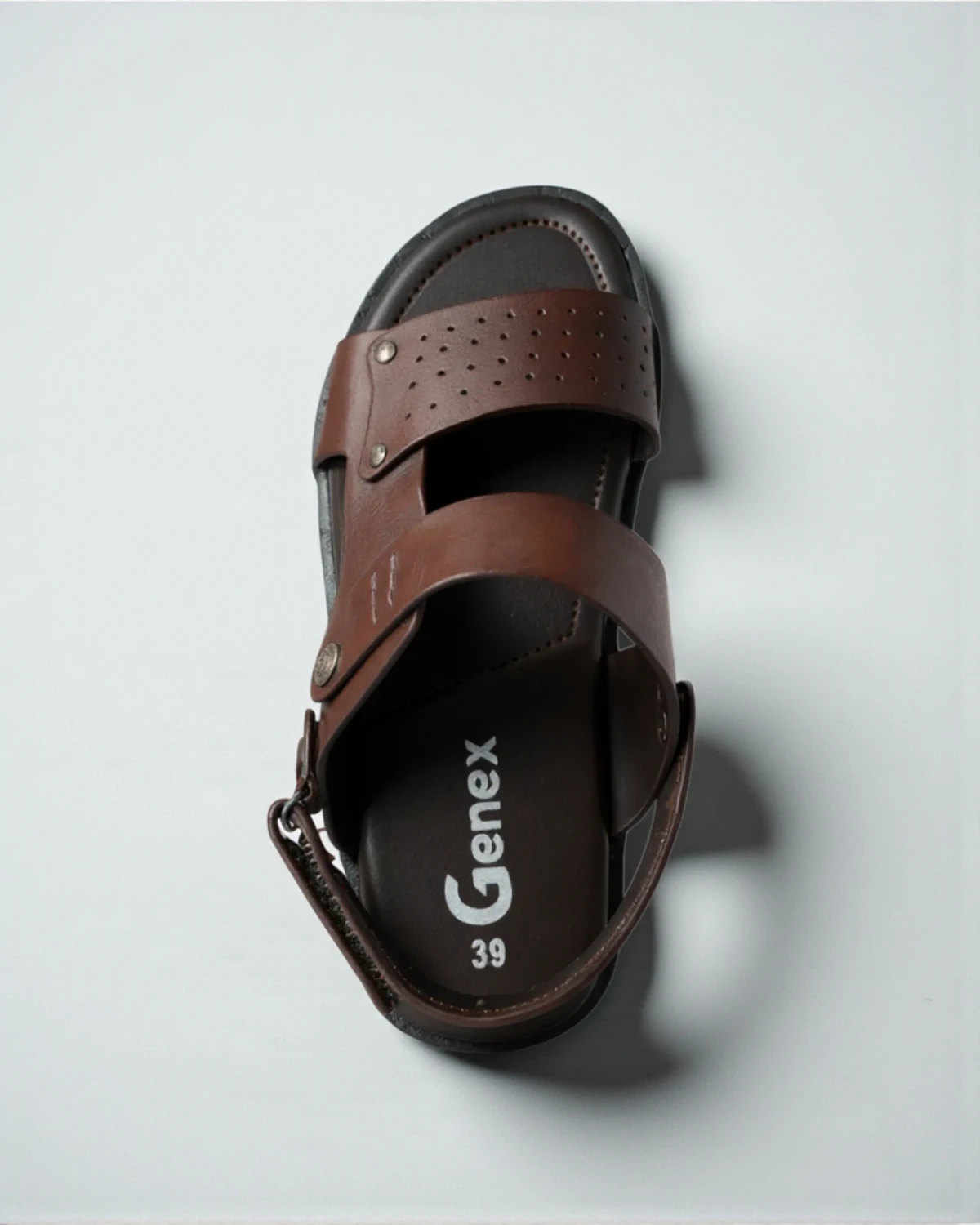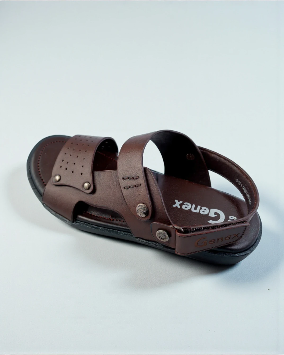 Experience all-day comfort and rugged style with the Genex Men's Back-Strap Sandal in Dark Brown. Featuring a breathable perforated upper and a secure adjustable closure, is crafted for durability and everyday casual wear.