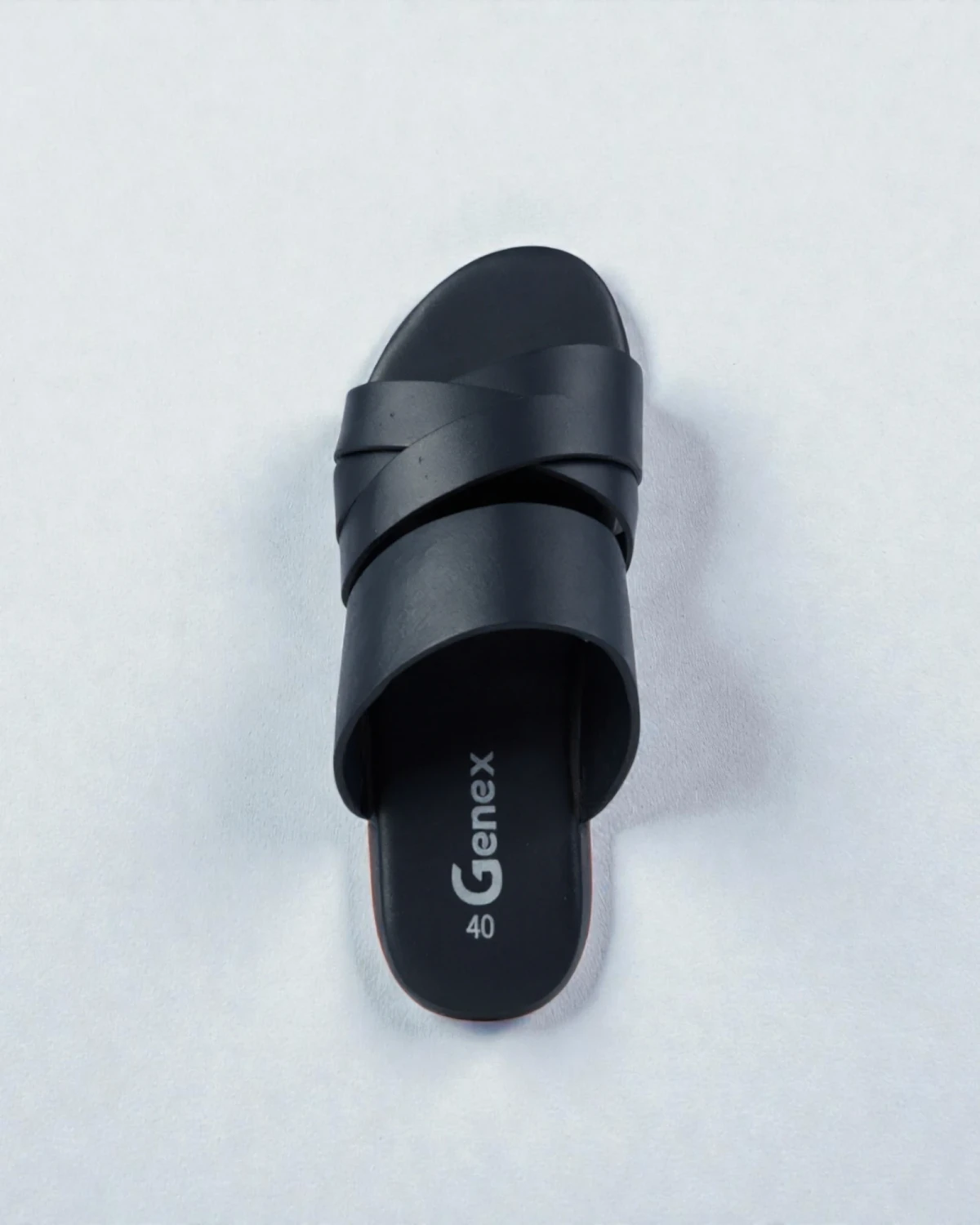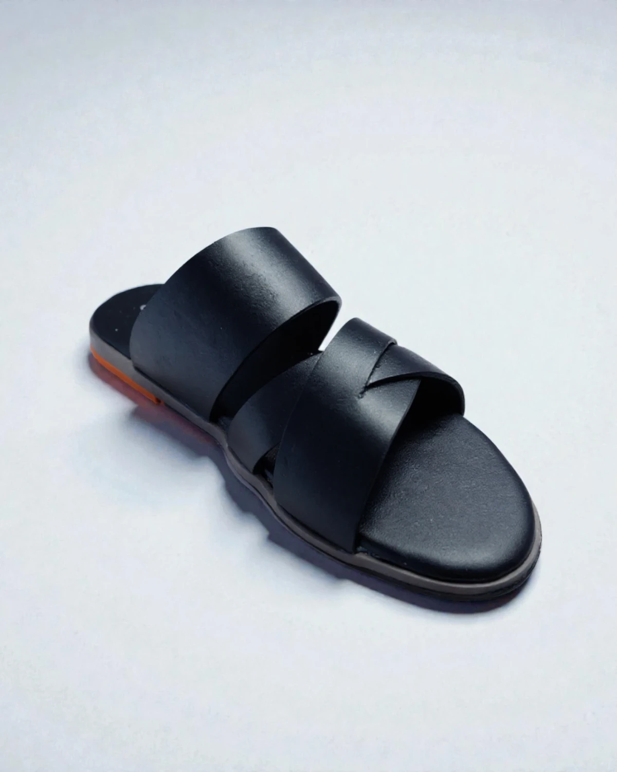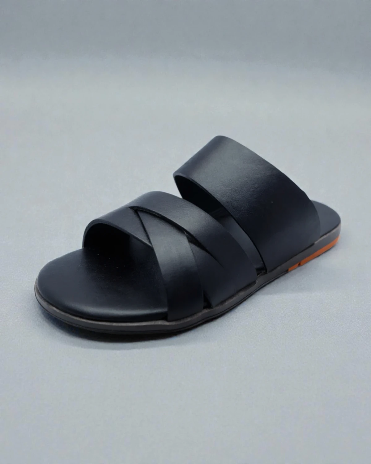 Experience the perfect blend of style and ease with these premium black cross-strap slide sandals. Designed for the modern man, this slip-on footwear features a sleek leather-finish upper and a cushioned sole, making it an ideal choice for casual outings and daily comfort.