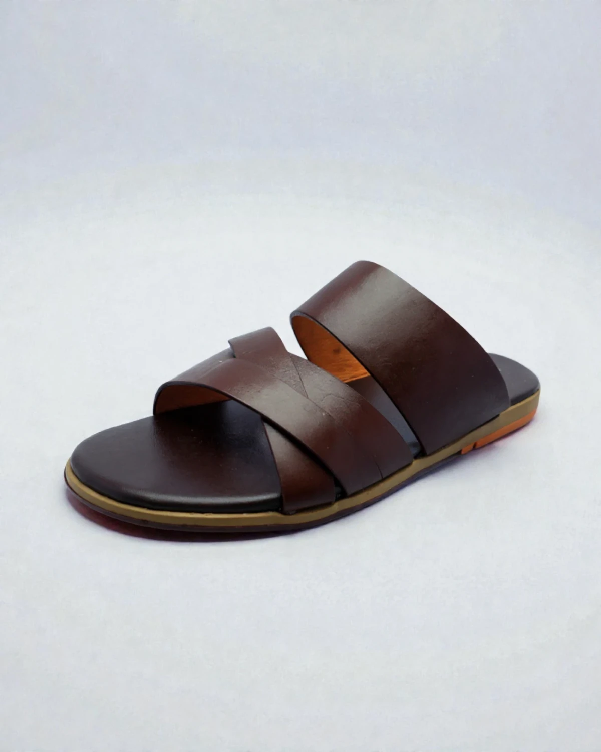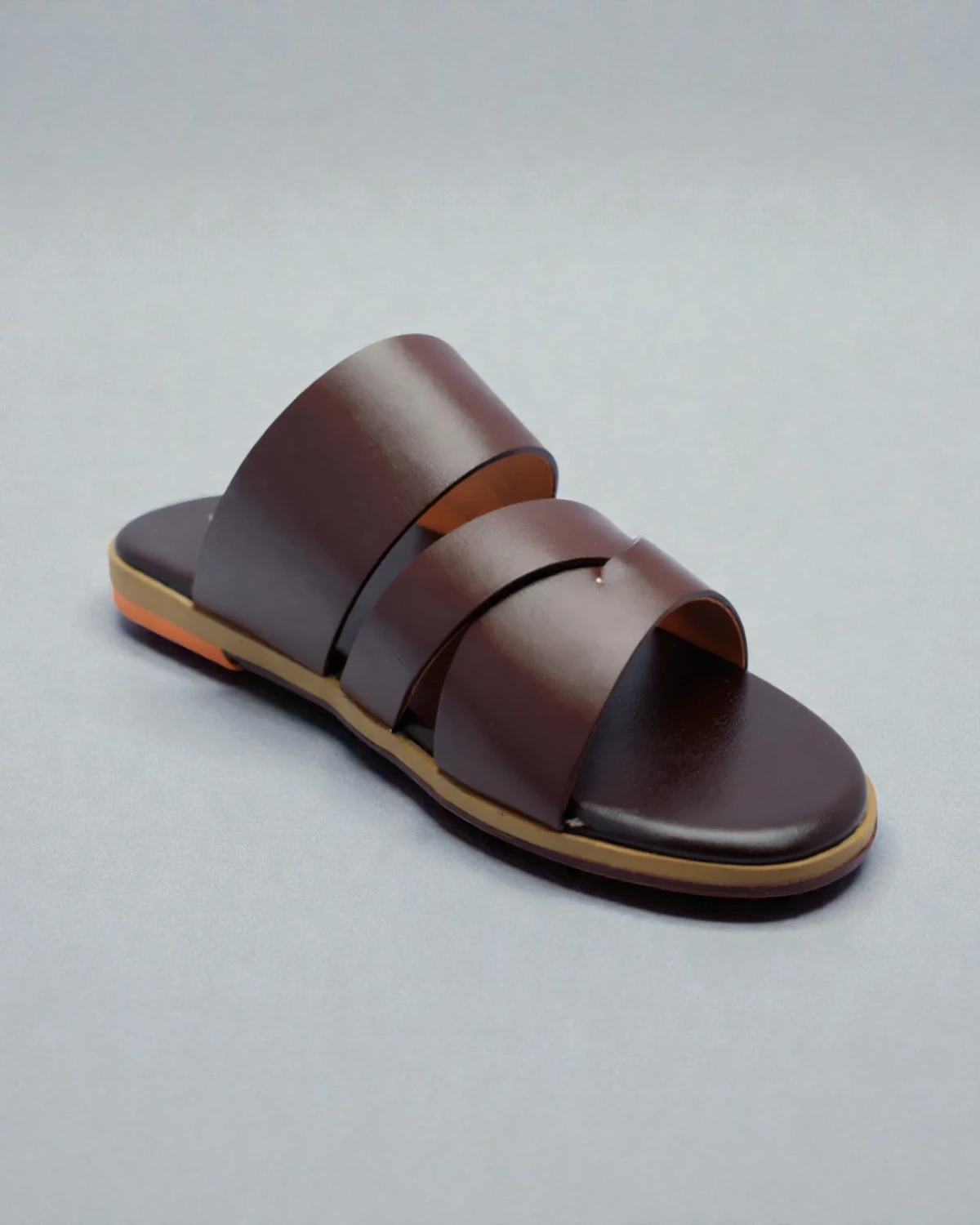 Experience the perfect blend of modern minimalism and everyday comfort with these Premium Dark Brown Dual-Strap Slides. Designed with a rich, smooth finish and a cushioned footbed, this slip-on is the ideal choice for smart-casual outings and traditional wear.
