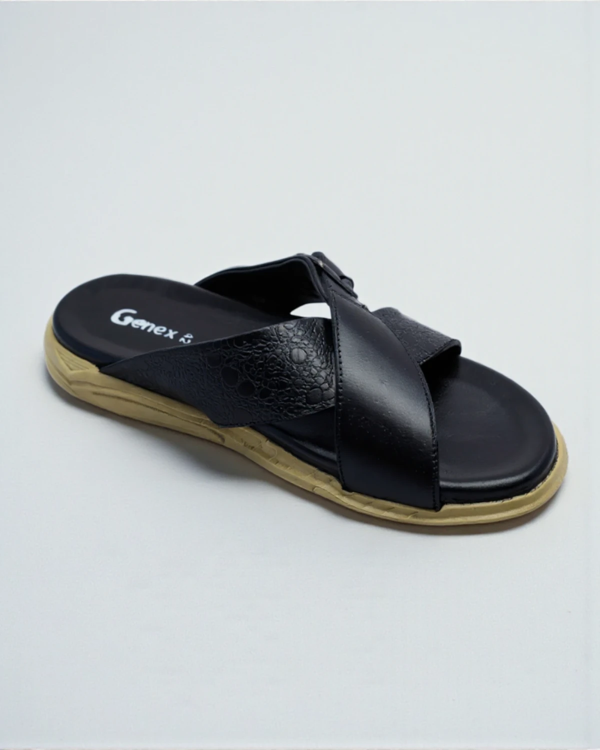 Experience premium comfort with the Genex Men's Slide Sandals, featuring a sophisticated textured upper with a stylish buckle accent. Designed for daily durability and casual elegance, these slip-ons offer a cushioned footbed and a sturdy beige sole for effortless walking.