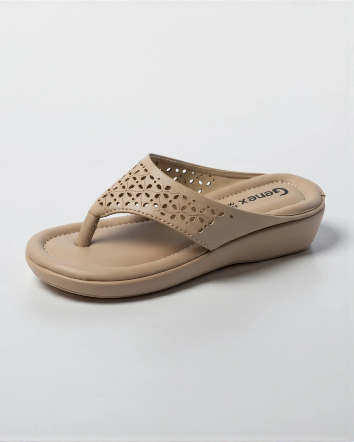 Genex Children's Adorable Beige Wedge Sandal with Floral Perforated Strap Design | Comfortable Thong-Style Footwear for Summer Play and Casual Occasions
